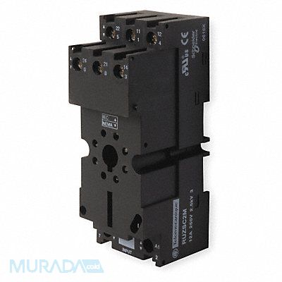 Relay Socket Base Style Octal Contact Form DPDT Current Rating 12 A Electrical Connection Screw Flat Pin Width Not Applicable Number of Pins 8 Number of Terminals 8 Pin Shape Round Socket Type Elevator Finger Safe Contact Terminal Arrangement Separate Mounting Style DIN Rail Color Black Contact Rating (AC) 12 A @ 250V Depth 4.13 in Height 3.54 in IP Rating IP20 Maximum Operating Temperature 131 Degrees F Minimum Operating Temperature -40 Degrees F