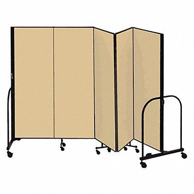 F1882 Portable Room Divider Number of Panels 5 Overall Height 4 ft Overall Width 9 ft 5 in Panel Thickness 3/4 in Color Beige Sound Absorbing Acoustical Panels with Black Painted Metal Trim Construction Fully Assembled Features Full Length Aluminum Piano Hinges and Self Leveling Nonmarking Casters