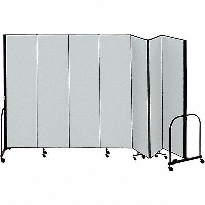 F1890 Portable Room Divider Number of Panels 7 Panel Height 6 ft Panel Width 13 ft 1 in Overall Height 6 ft Overall Width 13 ft 1 in Panel Thickness 3/4 in Color Gray Sound Absorbing Acoustical Panels with Black Painted Metal Trim Construction Fully Assembled Features Full Length Aluminum Piano Hinges and Self Leveling Nonmarking Casters