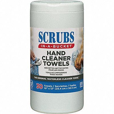 Hand Cleaning Towels Hygiene Series None Requires Dispenser No Refill Type No Refill Packaging Type Canister Hygiene Form Towels Sheet Size 10 in x 12 in Hygiene Properties None Wipes per Container 30 Fragrance Citrus Formula Waterless Fortified With Aloe Vitamin E and Alcohol Free Color Blue/White Material Polypropylene Hand Cleaning Towels Package Quantity 6