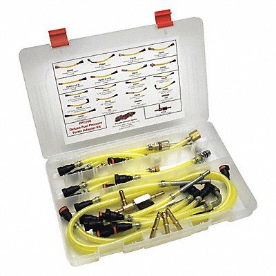 Fuel Pressure Tester Adapter Kit Tool Type Fuel Pressure Tester Length 9 in Width 14 in Height 2 in Material Steel For Vehicle Tool Category Vehicle Lubricants Color Clear Includes Cleaner Canisters Fuel Pressure Connectors Injections Testers Universal Adapter Set Number of Pieces 21 Application Automotive For Use With Fuel Lines