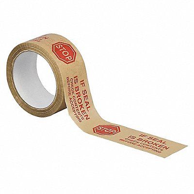 Tamper Evident Tape Message If Seal Has Been Broken With Stop Sign Tape Thickness 1.9 mil Imperial Tape WxL 2 in x 55 yd Metric Tape WxL 50.8 mm x 50.29 m Tape Color Tan Tape Tensile Strength 26 lb-in Min Tape Performance Temp -20 Degrees F Max Tape Performance Temp 150 Degrees F Tape Core Diameter 3 in Tape Adhesive Hot Melt Resin Tape Adhesive Strength 44 oz/in Standards 150SP Shelf Life 12 mo Text Color Red Imperial Tape Length 55 yd Imperial Tape Width 2 in