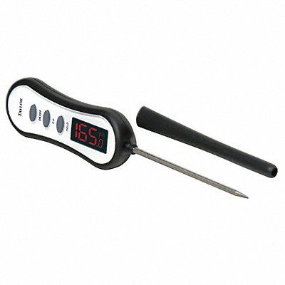 Digital Food Service Thermometer Food Service Thermometer Sub Category Stem Thermometer Food Safety Temp Range (F) -40 Degrees to 450 Degrees F Temp Range (C) -40 Degrees to 232 Degrees C Accuracy +/-1 Degrees F Stem Length 3 3/4 in Diameter 1/6 in Length 8 1/4 in Stem Material 304 Stainless Steel Case Material ABS Plastic Lens Material PVC Display LED Digit Size 1/2 in Features Pen Style Step Down Probe Tip Includes (2) Lithium Batteries Manufacturers Warranty Length 1 yr