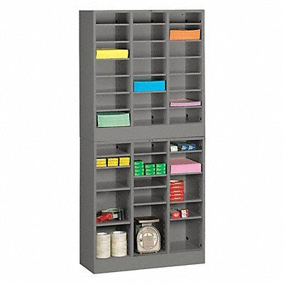 Literature Sorter Letter Size Openings Construction Welded Steel and Fully Assembled Height 33 in Width 30 5/8 in Depth 11 1/2 in Color Medium Gray Number of Compartments 21 For Use With 9DU19