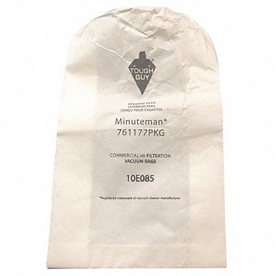 Vacuum Bag For Vacuum Type Critical Area Vacuum Fits Vacuum Brand Minuteman Fits Vacuum Models C80106-01 C80704-01 C80704-03 C80704-05 C82907-00 C82985-06 C87506-02 Minuteman Models C82906-01 Bag Filtration Type Standard Filter Efficiency Up to 99 Percent at 0.3 microns Bag Material Paper Ply Count 1-Ply Bag Pickup Type Dry Bag Reusability Non-Reusable Height 1/2 in Length 17 in Width/Diameter 10 in Package Quantity 10