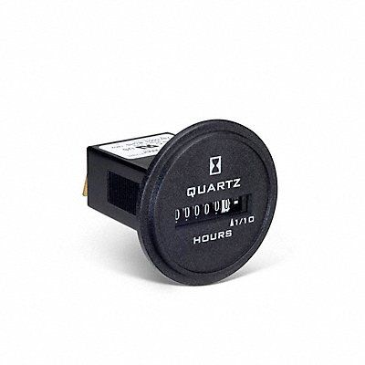 Hour Meter Display Type Electromechanical Time Range 0 to 99999.9 Bezel Face Size 2.24 in dia Bezel Face Shape Round Bezel Face Type Flush Mount Elapsed Time To 99 999.9 Operating Voltage 10 to 80V DC Number of Digits 6 Display Units Hours/Tenths Bezel To Back Length 1.5 in Ambient Temp Range -40 Degrees to 185 Degrees F Material of Construction Black Polymer Reset Type Non Resettable Temp Range -40 Degrees to 185 Degrees F Fits 2.0 in dia Panel Opening Mounting Method Clip