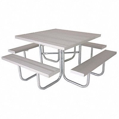 Picnic Table Square Entry Walk Through Tabletop Material Aluminum Overall Width 76 in Overall Depth 76 in Overall Height 30 in Bench Height 18 in Color Silver Frame Color Silver Frame Finish Galvanized Frame Material Steel Leg Type Portable Top Thickness 2 in Weight Capacity 500 lb Required