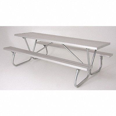 Picnic Table Rectangle Entry Walk Through Tabletop Material Aluminum Overall Width 96 in Overall Depth 68 in Overall Height 30 in Bench Height 18 in Color Silver Frame Color Silver Frame Finish Galvanized Frame Material Steel Leg Type Portable Top Thickness 2 in Weight Capacity 500 lb Required