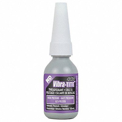 Pipe Thread Sealant Cure Type Anaerobic Series 440 Container Size 0.3 fl oz Container Type Bottle Maximum Operating Temperature 300 Degrees F Minimum Operating Temperature -60 Degrees F Maximum Operating Pressure for Gases 300 psi Maximum Operating Pressure for Liquids 10 000 psi Color Purple For Fluid Type Grease Oil For Material Type Metal Specific Sealing Application For Hydraulic Systems For Maximum Thread Diameter 2 in Chemical Base Dimethacrylate