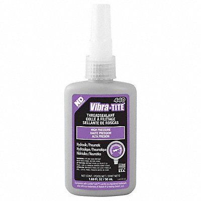Pipe Thread Sealant Cure Type Anaerobic Series 440 Container Size 1.7 fl oz Container Type Bottle Maximum Operating Temperature 300 Degrees F Minimum Operating Temperature -60 Degrees F Maximum Operating Pressure for Gases 300 psi Maximum Operating Pressure for Liquids 10 000 psi Color Purple For Fluid Type Grease Oil For Material Type Metal Specific Sealing Application For Hydraulic Systems For Maximum Thread Diameter 2 in Chemical Base Dimethacrylate