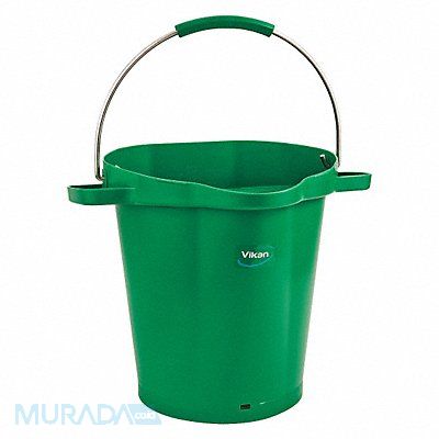 J5101 Hygienic Bucket Product Type Bucket Capacity 5 1/4 gal Material Polypropylene/Stainless Steel Includes Graduation Markings Yes Includes Handle Yes Color Green Overall Width 19 in Overall Length 19 in Overall Depth 19 in Autoclavable Yes Color Coding System Yes Compatible Grainger Part Number 48TP30 Compatible Manufacturer Part Number 56932 Graduation Scale 1 qt Handle Material Stainless Steel Shape Round
