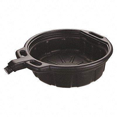 Oil Drain Pan Type Drain Pan Material Polyethylene Capacity 4.25 gal Overall Diameter 18 7/16 in Overall Height 5 13/16 in Overall Length 23 1/4 in Overall Width 18 7/16 in Color Black Includes Large Handle Pour Spout and Anti Spill Spout Cap Pouring Spout Included Yes
